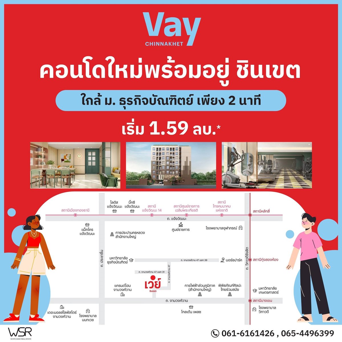 Vay Chinnakhet คอนโดใหม่แต่งครบ พร้อมอยู่ เริ่มเพียง 1.59 ล้าน 2 นาที ถึง ม.ธุรกิจบัณฑิตย์ โทร 061-6161426 ขาย For Sale condominium